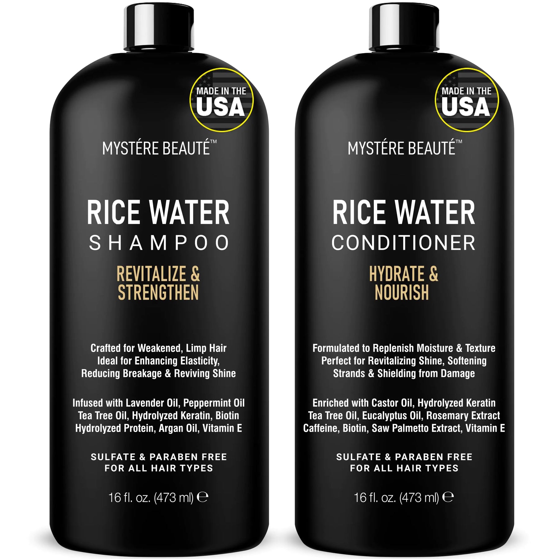 MYSTÉRE BEAUTÉ Rice Water Shampoo and Conditioner Set - Ultra-Nourishing Hair Care Set Promotes Growth Revitalizes Shine and Shields from Damage - Infused with Essential Oils - 16 fl oz Each